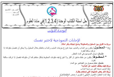 هل تريد تحميل حل كتاب العلوم للصف التاسع اليمن الجزء الاول والثاني 2026 بصيغة pdf؟ او تنزيل حل جميع اسئلة كتاب العلوم التاسع المنهج اليمني.